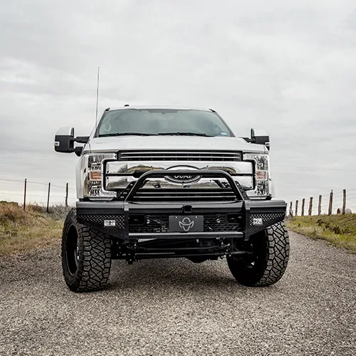 A front bumper with a steel body paired with the bullnose pipe creates a solid center point of defense. The bullnose front bumper is designed for and easily accessorized with off-road lights.